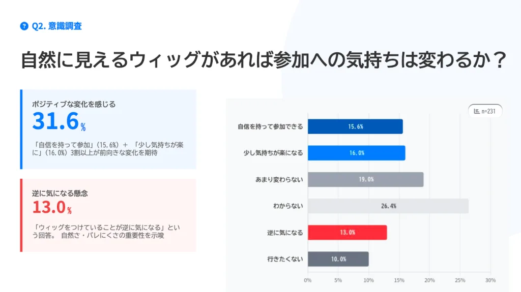 もし「自然なウィッグ」があったら?15.6%が「自信を持って参加できる」