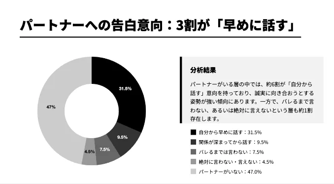 パートナーへの告白意向:実は6割が「自分から話す」気持ちがある